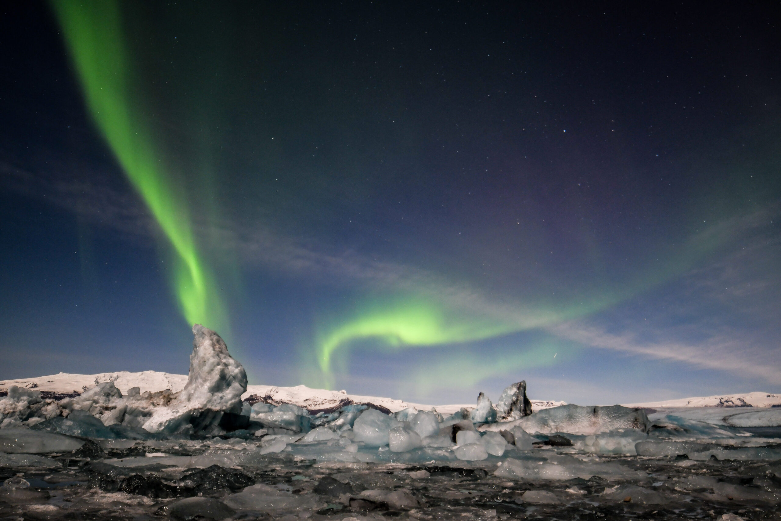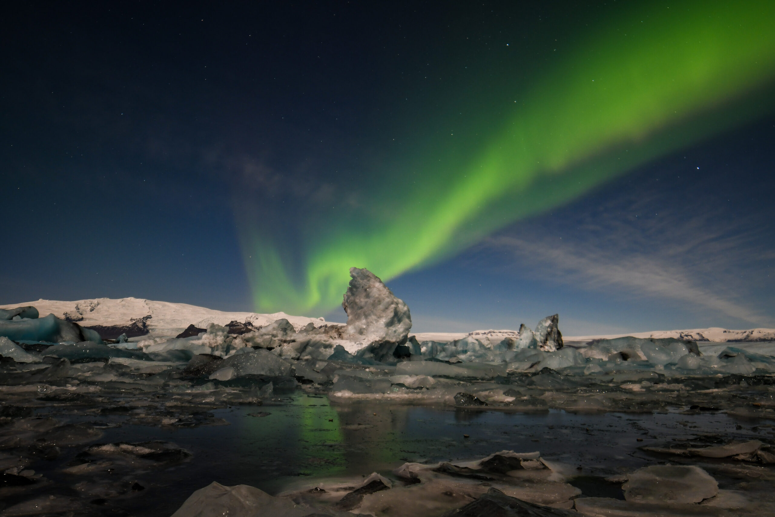 Single Aurora streamer above 'Iceberg Lagoon' under a full moon #2